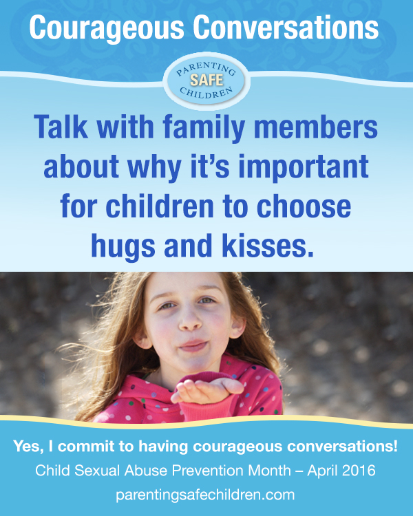 Every day this month, I am posting a Courageous Conversation tip on Facebook. Many of you ask me for language to help you get the conversation started, so I am including sample language as well. Go to Facebook now and please also share my posts with everyone you know so we can build communities – far and wide – that are off limits to child sexual abuse.